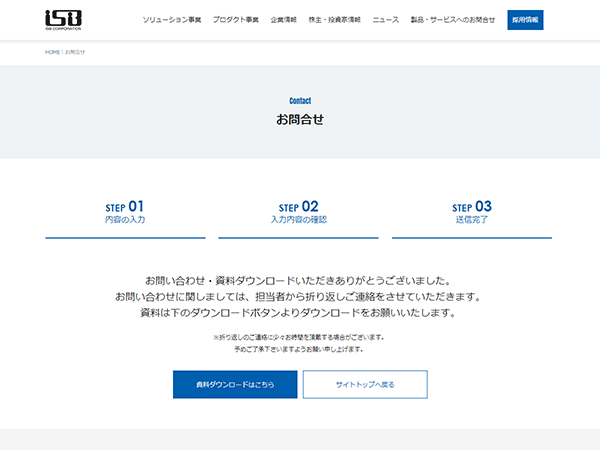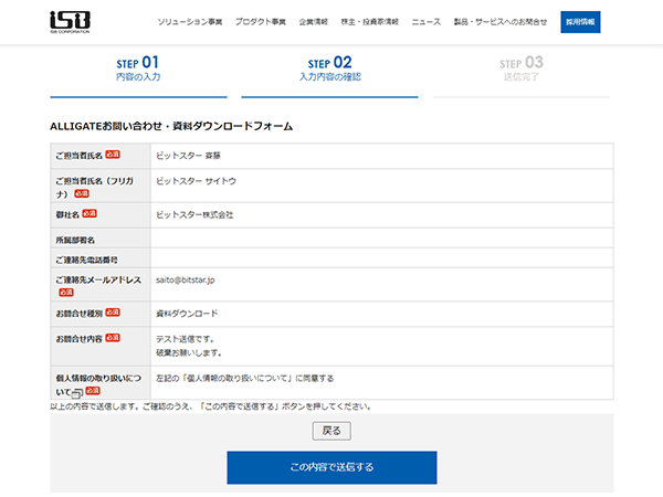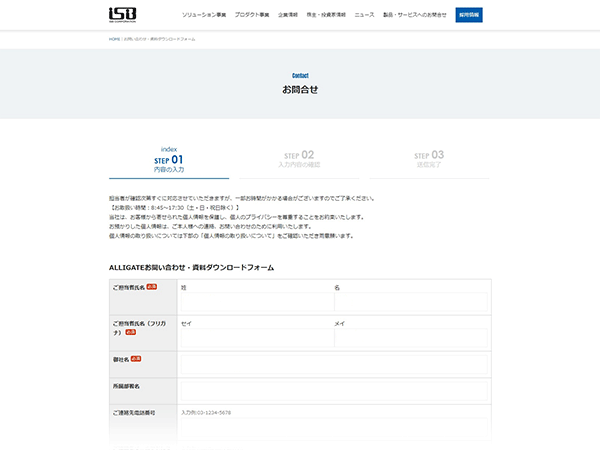 「資料ダウンロード」ボタンを押下すると、株式会社ISB(アイ・エス・ビー)のALLIGATEお問い合わせ・資料ダウンロードフォームへ遷移します。