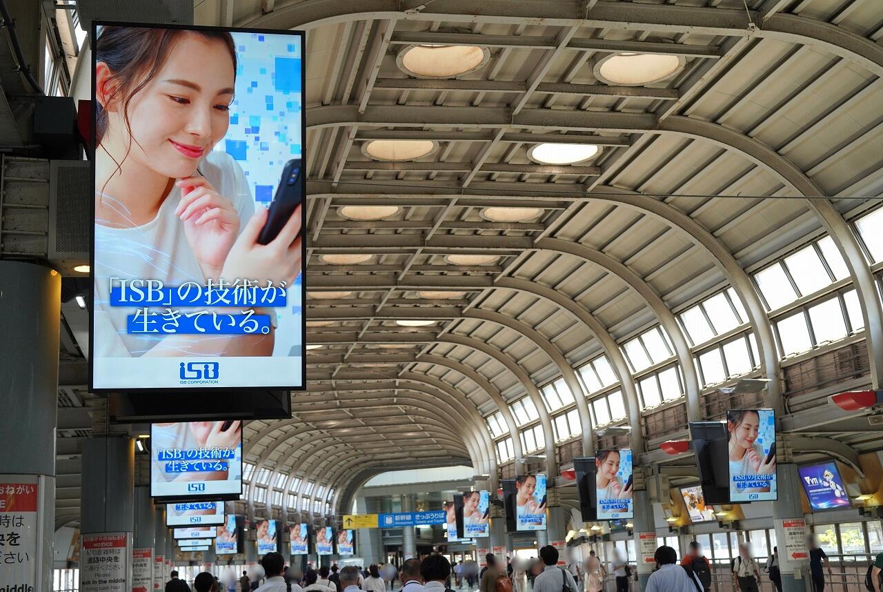 <品川駅自由通路で展開中のISBサイネージ広告の様子>