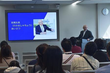 会社説明では、イラストや実例を交えた内容にお子さんも興味津々。わからない点を親に尋ねる姿も見られ、ご家族にとっても社員の仕事への理解が深まる時間となりました。